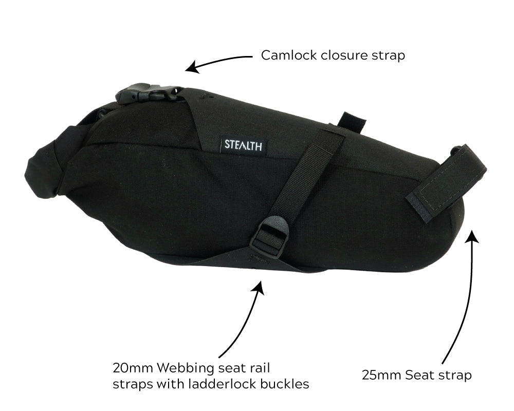 All new micro seat bag ready for overnight adventures or long days in the saddle.